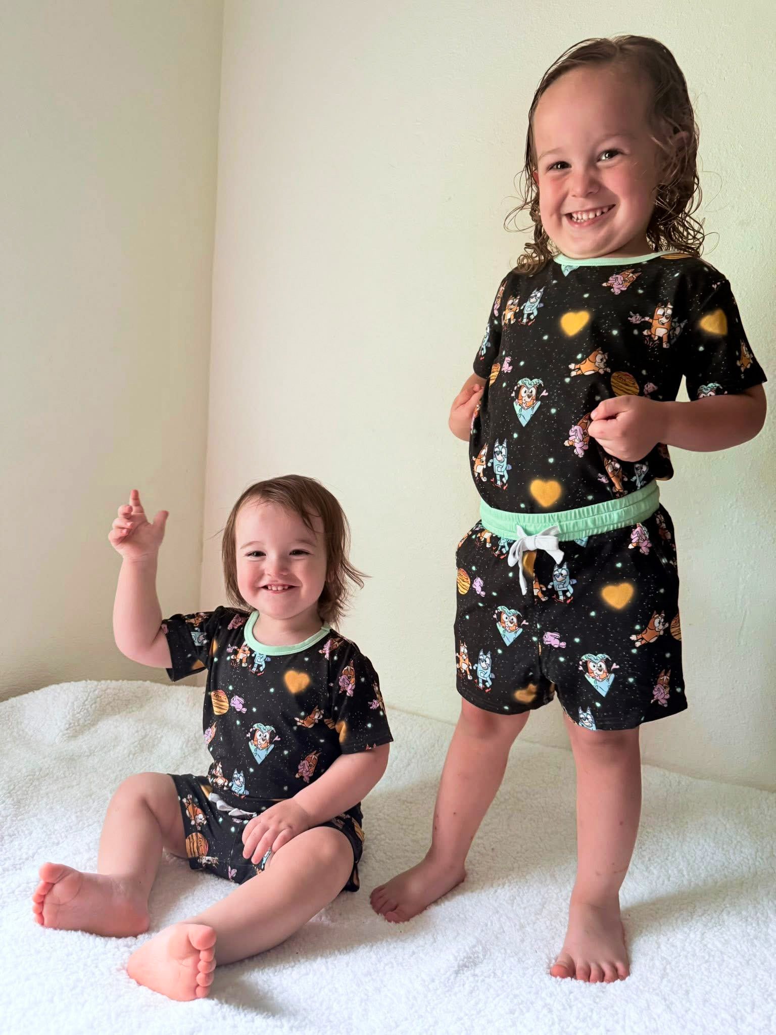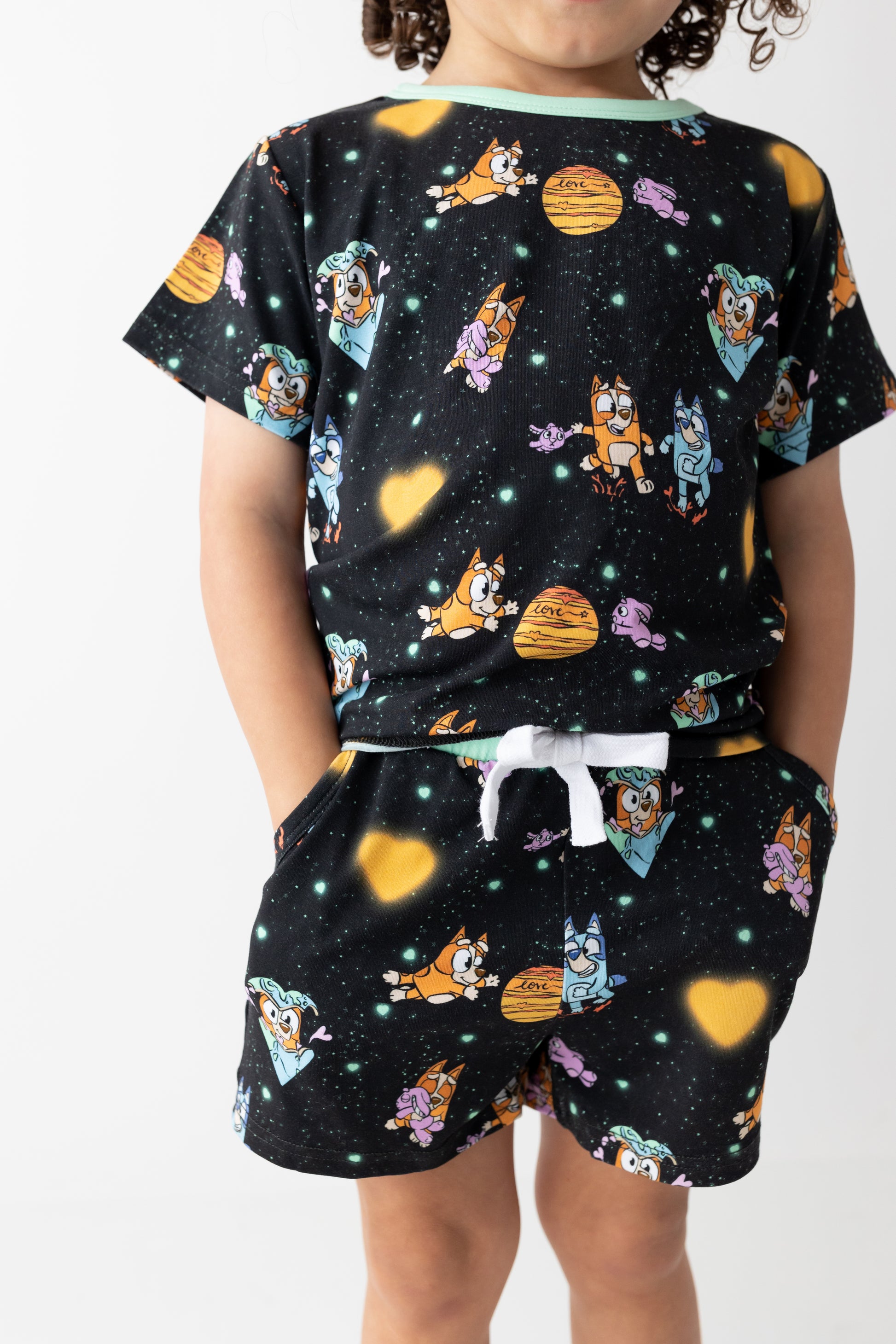 The elastic waistband with a working drawstring ensures a secure and adjustable fit, while real pockets add a touch of functionality for tiny treasures. A tagless design keeps irritation away, making this set as comfortable as it is cute. Perfect for playtime, lounging, or heading out on adventures.